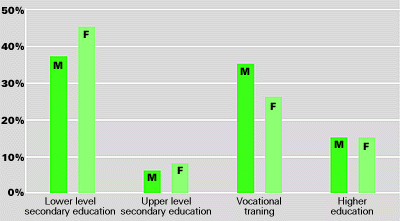 Figure 2.3 Level of education in Denmark. Highest completed education in the 15-69 years age group.