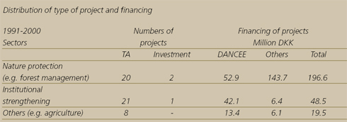 Several technical assistance projects have been implemented within the sector related to nature protection. The contribution from cofinancing has been approx. 75%.