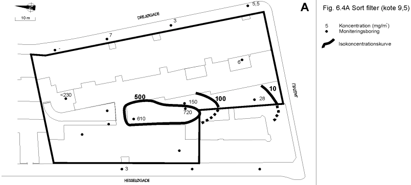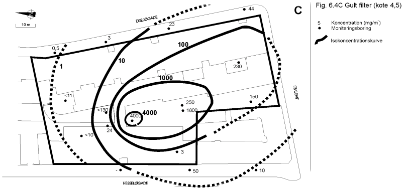 Poreluft. Indhold af tetrachlorethylen (PCE) i moniteringsboringer (mg/m)