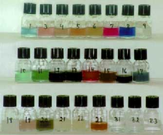 Kemikalier i tekstiler 6. Simuleret husholdningsvask af udvalgte tekstiler6.1 Vaskescenarium For at undersøge i hvor stort omfang udvaskning af kemikalier kan forventes at forekomme ved normal husholdningsvask, er der foretaget en række vaskeforsøg. I dette kapitel er det først beskrevet, hvordan vaskeforsøgene er udført, hvilke stoffer vaskevandet er analyseret for, og hvilke tekstiler der er vasket. Derefter er analyseresultaterne beskrevet, og kapitlet afsluttes med en opsummering. 6.1 VaskescenariumForsøgene med vask af udvalgte tekstiler blev udført i såkaldte launder-o-metre efter ISO-standarden: ISO 105-C06:1994(E), som er små (ca. 0,5 l) stålkar med låg, hvori den simulerede husholdningsvask foregår. Den anvendte ISO-standard bruges normalt til test af tekstilers farveægthed over for husholdningsvask og industrivask. De udførte vaskeforsøg svarer ifølge standarden til én husholdningsvask, hvad angår farvetab mm. For hvert tekstil blev der foretaget én vask og ét skyl, og vandet fra vask og skyl blev blandet og gemt til analyse. Procedure for vaskeforsøgene er detaljeret beskrevet i bilag 4. 6.2 Valg af analyseparametreDe stoffer, det er valgt at analysere vaskevandet for, er de samme som dem, der blev fundet i tekstilprøverne. Det vil sige, at det f.eks. er valgt ikke at analysere for farvestoffer, da de udvalgte farvestoffer ikke blev fundet i tekstilerne, og da det ikke umiddelbart er muligt at identificere andre farvestoffer uden en standard af præcis samme farvestof. Dog er tre vaskeprøver med sandsynligt indhold af azo-farvestoffer (bl.a. gule nuancer) analyseret for indhold af arylaminer efter reduktiv spaltning af azoforbindelser (se bilag 4). Arylaminindholdet i disse prøver kan betragtes som et relativt udtryk for indholdet af farve med "let" fraspaltelige arylaminer. Langkædede nonylphenolethoxylater Som noget nyt i forhold til tekstilanalyserne blev det valgt at analysere vaskevandet for langkædede nonylphenolethoxylater. Kun vaskevand fra vask af tekstiler, hvori der blev konstateret indhold af kortkædede nonylphenolethoxylater (se kapitel 5), blev analyseret. Dette blev gjort, fordi fundet af kortkædede NPEOer er en indikation af, at også langkædede er tilstede. Analyse for langkædede nonylphenolethoxylater blev ikke prioriteret ved analysen af tekstilerne - bl.a. fordi disse analyser skal køres separat og er meget omkostningsfulde. De anvendte analysemetoder er detaljeret beskrevet i bilag 4. 6.3 Valg af tekstilerDa der i alle de analyserede tekstiler (se kapitel 5) blev fundet stoffer, som sandsynligvis i større eller mindre omfang vil kunne udvaskes under en husholdningsvask, blev der udført vaskeforsøg på samtlige tekstiler. 6.4 Resultat af udvaskningsforsøgeneEn delprøve af vaskevandet (vaskelud + første skyl) fra hvert af de udførte forsøg blev umiddelbart efter forsøgsafslutning fyldt på små glasklare flasker og fotograferet. Resultatet fremgår af figur 6.1, hvor det angivne nummer svarer til tekstilets nummer (se f.eks. tabel 5.2 i afsnit 5.2). Dog er prøve nr. 4 (udgået) i figur 6.1 identisk med prøve nr. 2 i projektet. Som det ses er der mere eller mindre farveafsmitning fra samtlige vaskede farvede tekstiler.