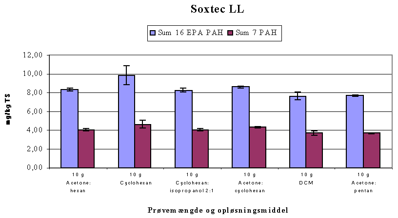 Figur 3.2.2b Sammenligning af Soxtec ekstraktionsmetoder for referencejord på lavt niveau