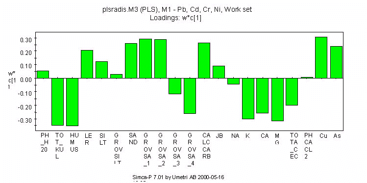 Afbildning af førsteaksen på figur B.5.2. De enkelte jordbundsparametres betydning for
