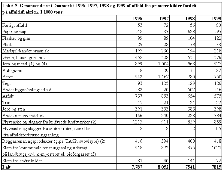 Affaldsstatistik 1999 Tabel 5. |