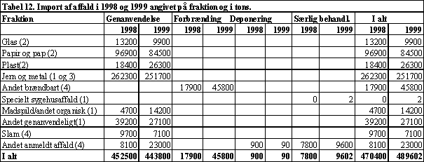 Kilde: (1) ISAG indberetninger 1998 og 1999, (2) Danmarks Statistik, (3) Genvindingsindustrien og andre større skrothandlere, (4) Registreringer i henhold til EUs transportforordning.