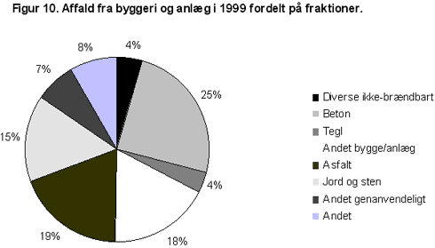 På figur 10 vises fordelingen af bygge- og anlægsaffaldet på de enkelte fraktioner i