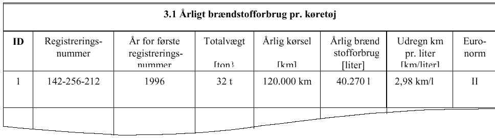 Alle køretøjer opføres. Eksempel: