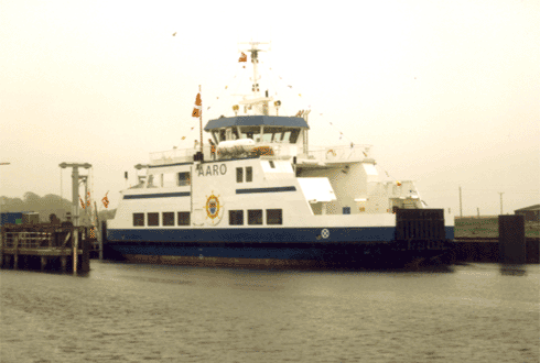 Hurtigfærgen "Mai Mols". Sammenfattende giver gasturbiner en høj effekt per kg turbine, og moderne gasturbiner har et forholdsvis lavt specifikt brændstofforbrug, specielt ved høj belastning. Det specifikke brændstofforbrug for en turbine, der yder 19.000 kW, er ca. 240 gram/kWtime. Det specifikke brændstofforbrug er i de fleste tilfælde højere end for dieselmotorer. 4.1.4 AtomreaktoranlægReaktoranlæg benyttes hovedsageligt i ubåde, i enkelte overfalde krigsskibe og i nogle få russiske isbrydere. Der er bygget 3 handelsskibe på forsøgsbasis for at afprøve tekniske og operative koncepter af USA, Tyskland og Japan. Ingen af disse tre skibe er i drift i dag. Reaktoranlæg er i princippet, og kort fortalt, et dampturbineanlæg, hvor dampen produceres af en atomreaktor og ikke som ellers af en kedel. Fordelene ved reaktoranlæg er, at der i praksis næsten er ubegrænset energi til rådighed. F.eks. yder fremdrivningsanlægget ombord i de amerikanske hangarskibe af Nimitz klassen 196.000 kW, og skibene kan sejle i ca. 13 år eller ca. 700.000-900.000 sømil svarende til ca. 40 gange jorden rundt, mellem hver fornyelse af reaktorkernen. Der findes på verdensplan atomreaktoranlæg installeret i ca. 15 store overflade krigsskibe (hangarskibe og enkelte andre). Der, hvor reaktoranlæggene benyttes mest, er ombord i ubåde (ca. 295 på verdensplan), idet et reaktoranlæg ikke er afhængig af atmosfærens ilt til forbrænding, da energien til dampfremstilling fremkommer ved atomspaltning. Som tidligere nævnt er fordelen, at der i praksis er ubegrænset energi til rådighed, samt mulighed for drift uden brug af atmosfærisk luft. De negative sider er, at disse anlæg er utroligt kostbare både i anskaffelse og drift. Sikkerhedsforanstaltningerne er ekstreme, og der er stort behov for højtuddannede specialister til at betjene disse anlæg. Endvidere er hele problematikken omkring bortskaffelse af brugte reaktorer og brugt reaktorbrændsel ikke løst på en tilfredsstillende måde. Reaktoranlæg kunne ellers udfra visse miljøanskuelsesvinkler synes attraktive, idet de ikke medvirker til direkte forurening af atmosfæren, da de ikke benytter fossilt brændsel som brændstof. Således er der ingen emission af CO2 eller NOx fra et reaktoranlæg. Reaktoranlæg synes ikke i den umiddelbare fremtid at ville vinde indpas i civile skibe, da anskaffelses- og driftsomkostninger ikke er rentable udfra rent økonomiske betragtninger. Endvidere er der ikke nogen tilfredsstillende løsning på opbevaring af brugte radioaktive brændselselementer. 4.2 HjælpemaskineriEt skibs hjælpemaskineri består af et stort antal maskiner og aggregater. Ombord produceres elektrisk energi til eget brug, ved at en dieselmotor, dampturbine eller gasturbine driver en generator. Der er normalt installeret 2-5 anlæg til fremstilling af el. El kan også frembringes ved en akselgenerator, der trækkes af hovedmaskineriet, når dette er i drift. Udover hjælpemotorerne kan skibet være udrustet med hjælpekedler til opvarmning af aptering og eventuel olielast. Hjælpekedlen kan også levere damp til eventuelle turbinedrevne cargopumper, der benyttes ombord i tankskibe til at pumpe last, olie, m.m. om og fra borde. Udover at omfatte aggregater til produktion af el omfatter hjælpermaskineriet et stort antal pumper, kompressorer, køleanlæg, air conditionering, ventilation m.m. 4.2.1 Hjælpemaskineriets brændstofforbrugHjælpemaskineriet har i dagens skibe i mange tilfælde en effekt som et lille kraftværk i land. Skibene er som nævnt udrustet med et betydeligt antal hjælpeaggregater, der alle bruger el fra radar og navigationssystemer til køleanlæg og eventuelle reefer containere, kølerum, pumper m.m. Hjælpemaskineriets størrelse er i nogen grad afhængig af skibets størrelse, men skibstypen har også stor betydning. Køleskibe, containerskibe med mange kølecontainere, tankskibe med mange eldrevne losse/lastepumper, færger og krydstogtskibe med store air conditioneringsanlæg og et meget stort antal lystarmaturer, kan nævnes som typiske skibe med stort elforbrug. For at få en fornemmelse af elforbruget ombord i nogle forskellige skibstyper er der i den følgende tabel opstillet typiske effekter på installeret hjælpemaskineri, årligt olieforbrug m.m.: