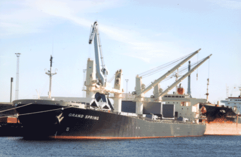 Bulk carrier "Grand Springs". 9.8 Emissioner fra erhvervsfiskefartøjer 1995 og 1999Der er i Danmark et stort antal erhvervsfiskefartøjer, ca. 2700 i 1999. Fiskefartøjerne er af meget varierende størrelse, fra de mindste kuttere med énmandsbesætning til store trawlere, der kan operere langt fra Danmark. Fartøjernes maskininstallationer er lige så forskellig som fartøjernes størrelse og udrustning. Beregning af energiforbrug og emissioner fra fiskeskibene beregnes derfor udfra det årlige olieforbrug. I 1995 blev olieforbruget oplyst af Danmarks Fiskeriforening og i 1999 af Jordbrugs- og fiskeriøkonomisk institut. Med hensyn til tallene for 1999 foretager Jordbrugs- og fiskeriøkonomisk institut forskellige statistiske og økonomiske beregninger for fiskeflåden. Man har blandt andet indberetning fra 20% af de i alt 1509 fiskeribedrifter (nogle bedrifter har mere end et skib) vedrørende olieforbruget. Nedenstående tal er resultatet af en opskalering af forbruget fra de 20% af bedrifterne, der indberetter brændstofforbruget. Det er valgt at benytte emissionsfaktorer fra TEMA 2000 vedrørende High Speed diesel (se afsnit 9.1.9) motorer med brug af gasolie med et svovlindhold på 0,1%.