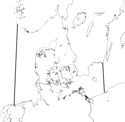Stor fisketrawler. 9.3 Beregning af emissioner fra fritidsfartøjerBeregninger af emissioner fra fritidsfartøjer er foretaget ud fra et ansat årligt driftstimetal og emissionsfaktorer. 9.4 FarvandsområdeI denne rapport er farvandene omkring Danmark at betragte som farvandsområdet med vestlige og østlige begrænsninger i Nordsøen og Østersøen langs den 6. og 16. længdegrad. Nord-syd afgrænsningerne udgøres i Nordsøen af henholdsvis Norges og Hollands kyst, og i Østersøen af Sveriges og Polens kyst. Herved fås det område, indenfor hvilket emissioner fra skibsfarten beregnes. Af afsnit 7 fremgår, at dansk territorialfarvand strækker sig 12 sømil ud fra kysten, hvilket i forbindelse med beregning af emissioner ikke er nogen rimelig grænse, da emissioner fra skibe udbredes til et større område.