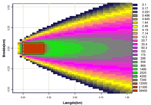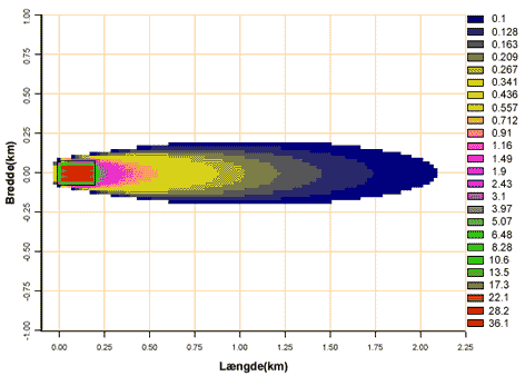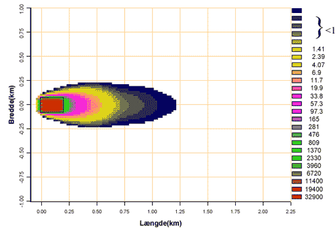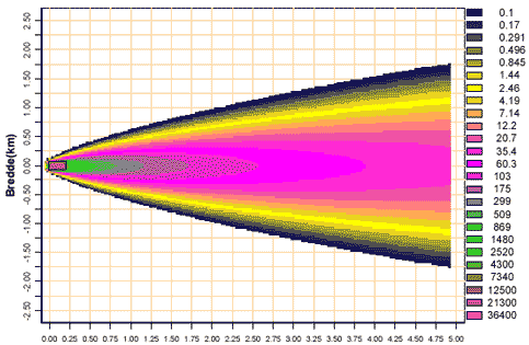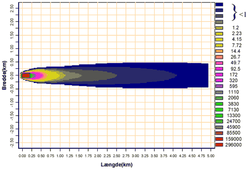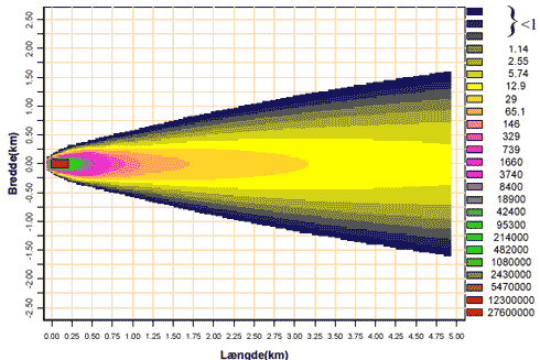 beregnes hvor langt og over hvor stort et areal mikroorganismerne spredes i forbindelse