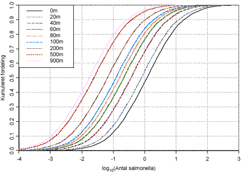 Figuren anvendes til at beskrive variationen i antal Salmonella og skal fortolkes som