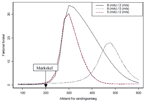 udenfor markskellet er godt 30 gange større i en afstand fra ca. 100 til 200m fra