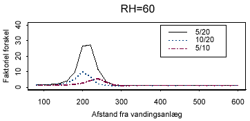 deponeringen for forskellige relative luftfugtigheder (60, 80 og 90 %) ved tre forskellige