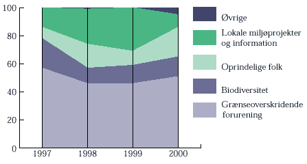Ca. 43 pct. af bevillingen er i 2000 anvendt til det arktiske moniteringsprogram AMAP,