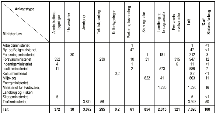 Tabel 6. Pesticidforbrug i staten i 1999 i kg aktivt stof fordelt på ministerium og anlægstype.