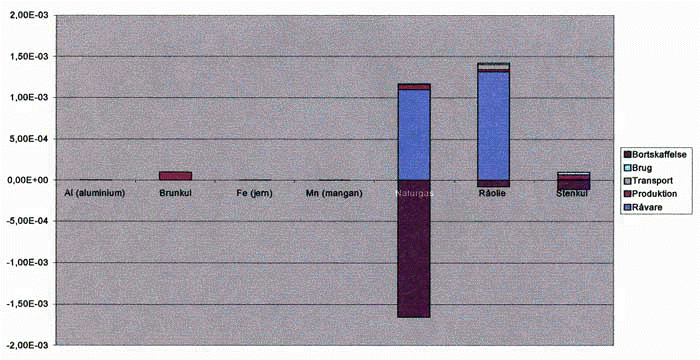 Figur 9: Ressourceprofil for genbrugsbæger 1 (PP) ved triptal 1, stationær vask og forbrænding ved bortskaffelse