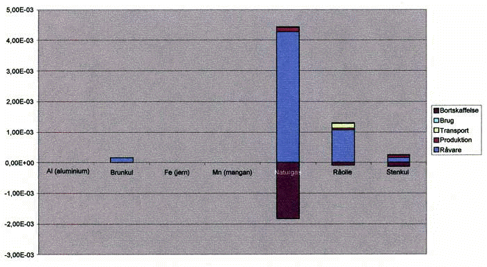 Figur 11: Ressourceprofil for genbrugsbæger 2 (PC) ved triptal 1, stationær vask og forbrænding ved bortskaffelse