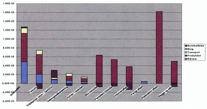 Figur 12: Miljøprofil for éngangsbæger 1 (PS) ved triptal 1 og forbrænding ved bortskaffelse