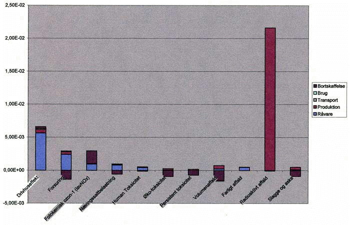 Figur 14: Miljøprofil for éngangsbæger 2 (PS) ved triptal 1 og forbrænding ved bortskaffelse