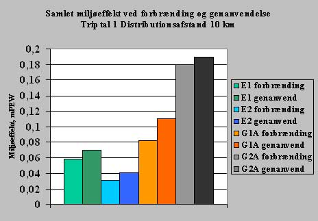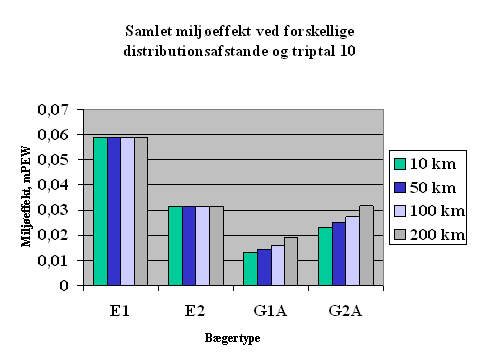 Samlet miljøeffekt ved forskellige distributionsafstande og triptal 10.