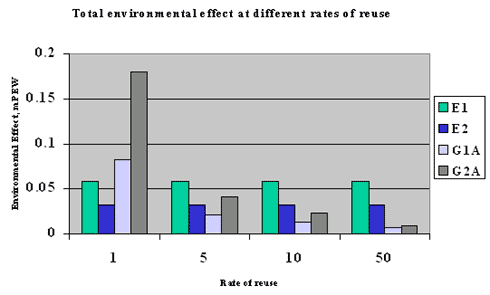 at various rates of reuse is shown in the bar chart below. G1A is the reusable PP cup. G2A
