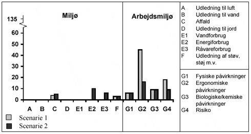 potteplanter. Miljøvurderingen er opdelt i scenarie 1 og 2, hvor scenarie 1 er
