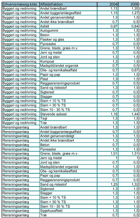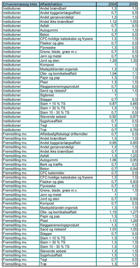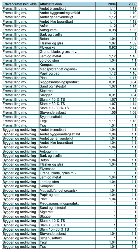 affaldsstatistikken er fordelt på de øvrige erhvervsmæssige kilder, anvendes disse