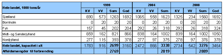 Affaldsforbrænding i 2004 og 2008, mængder og kapaciteter