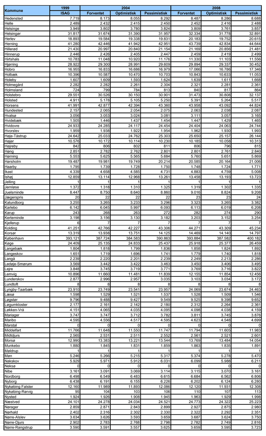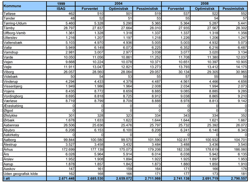 Tabel 37 Affaldsmængder til forbrænding på kommuneniveau