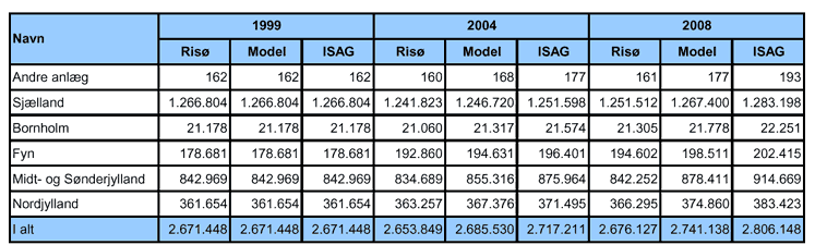 Tabel 38 Fremskrevne mængder ved ren Risø, i Modellen og ved ren ISAG