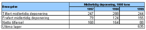 deponering og særlig behandling. Som supplement til 1999-tallene vises i en række