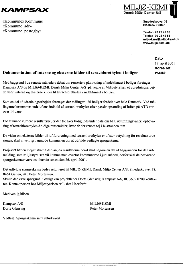 Dokumentation af interne og eksterne kilder til tetrachlorethylen i boliger