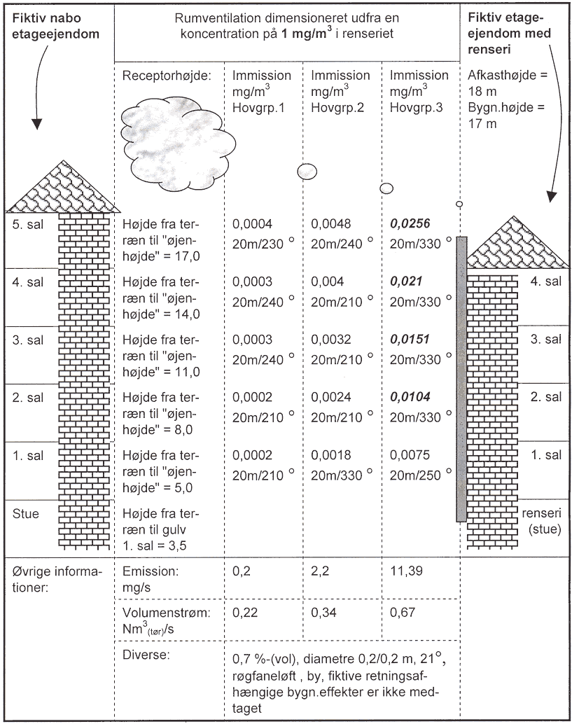 Oversigt over immissionskoncentrationsbidrag fra renserier i hovedgruppe 1 til