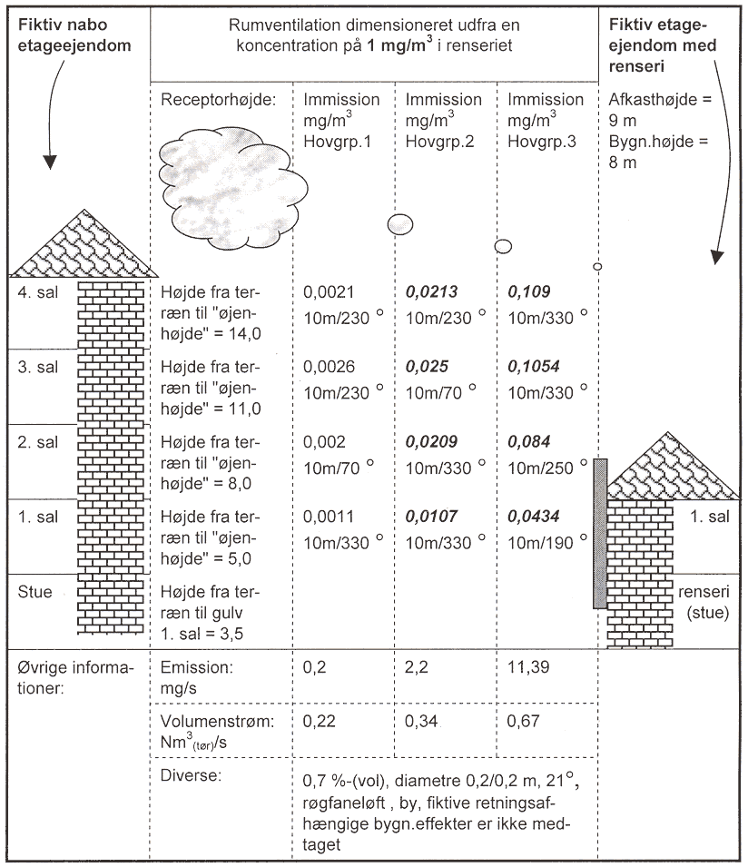 Oversigt over immissionskoncentrationsbidrag fra renserier i hovedgruppe 1 til
