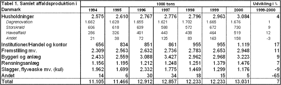 komposterings/biogasanlæg og deponeringsanlæg). Derfor indgår f.eks. ikke slagger,