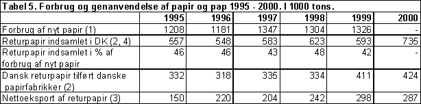 ![]() (1) Materialestrømsovervågning for returpapir. (2) ISAG indberetninger. (3) Danmarks Statistik. (4) Der er fortsat en mindre forskel mellem Returpapir indsamlet og Dansk returpapir tilført danske papirfabrikker + Nettoeksport. Denne forskel kan dels være udtryk for lageropbygning dels vedrøre papir af dårlig kvalitet som efter sortering fraføres til anden behandling end genanvendelse.