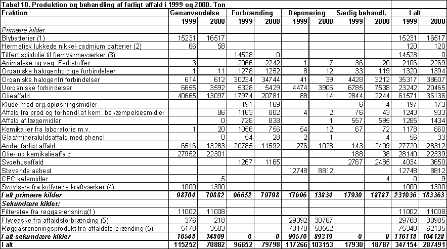Affaldsstatistik 2000 Tabel 10 |
