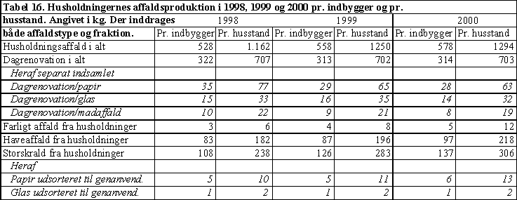 Affaldsstatistik 2000 Tabel 16 |