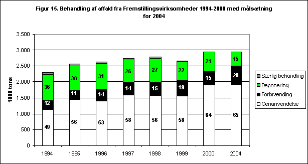 Figur 15 Behandling af affald fra Fremstillingsvirksomheder 1994-2000 med målsætning