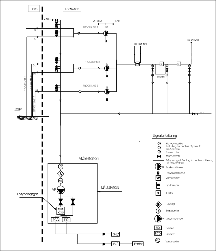 Figur 2.4: Procesdiagram, vakuumventilationsdelen og tilhørende målestation /ref.1/
