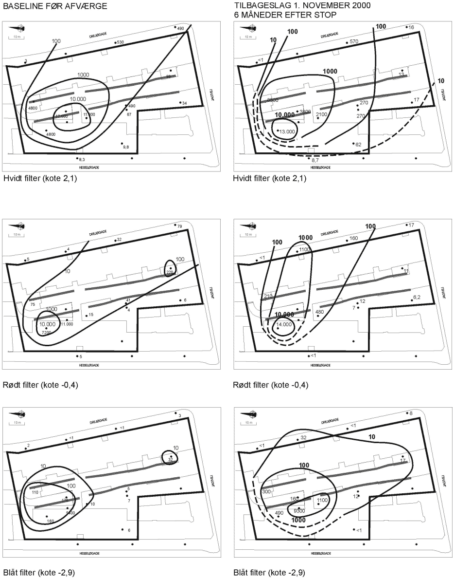 Bilag 9-1 Isokoncentrationskurve: Total kulbrinter i moniteringsboringer (µg/l)