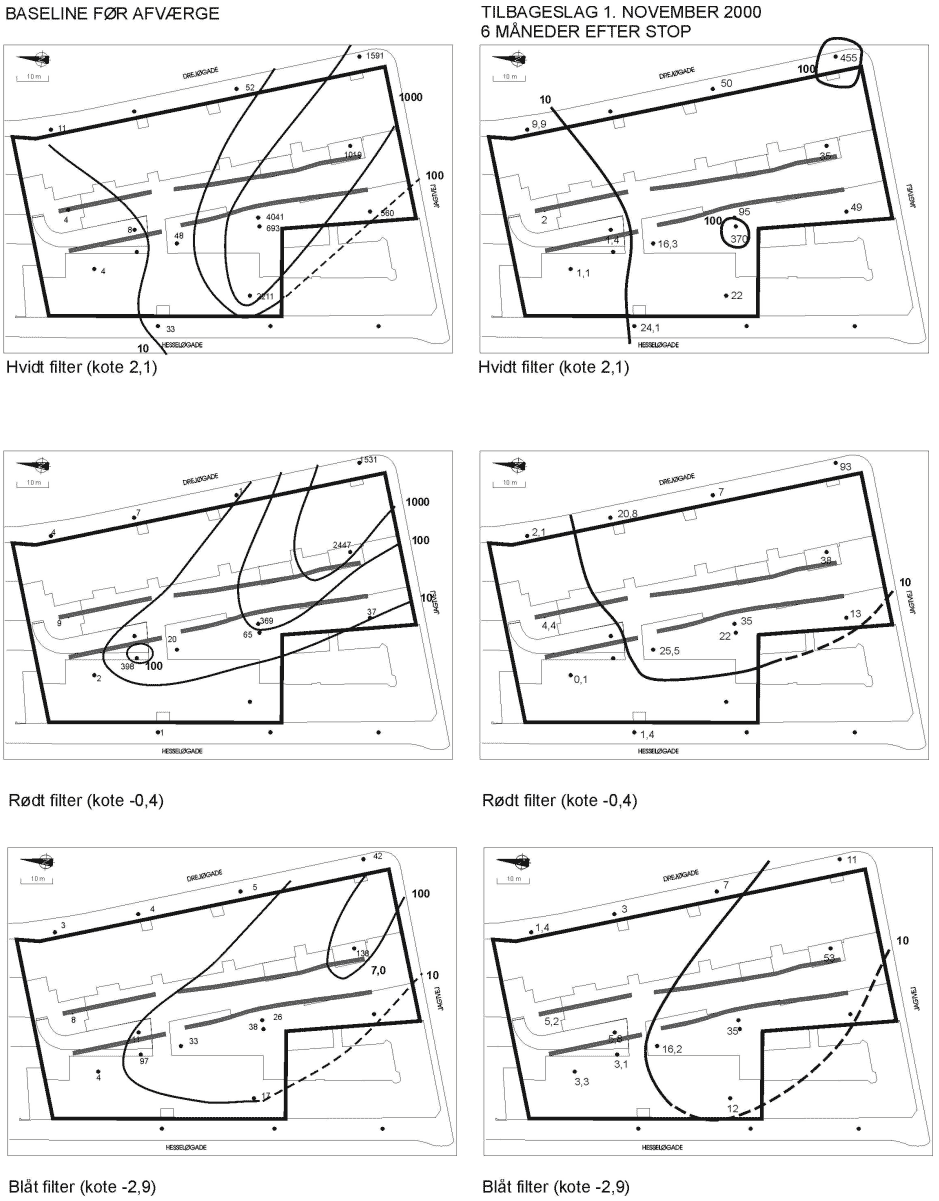 Bilag 9-3 Isokoncentrationskurve: PCE, TCE, PCM, TCA, TCM i moniteringsboringerne (µg/l))