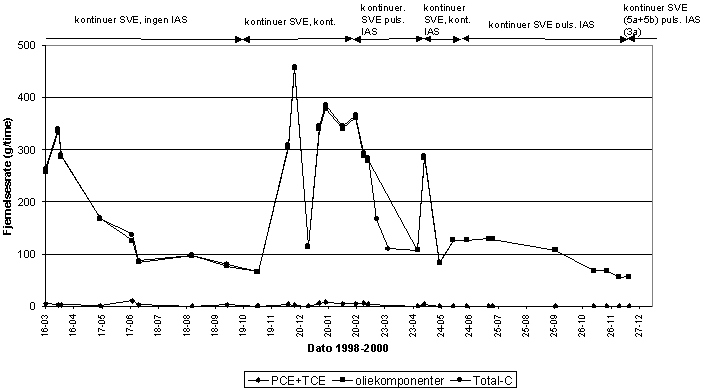 Fjernelsesrate fra nordlige forureningsområde (olieforurening) SVE-filter 1b