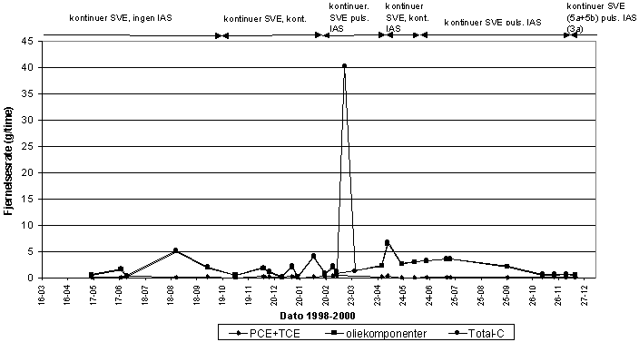 Fjernelsesrate fra sydlige forureningsområde (PCE-TCE forurening) SVE-filter 2a
