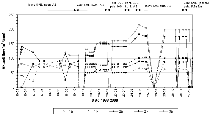 Ekstraheret poreluftmængde fra hvert SVE-filter Kun perioder med længerevarende driftstop angives