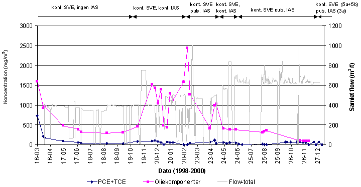 Koncentration og luftflow fra de i alt 5 SVE-filtre