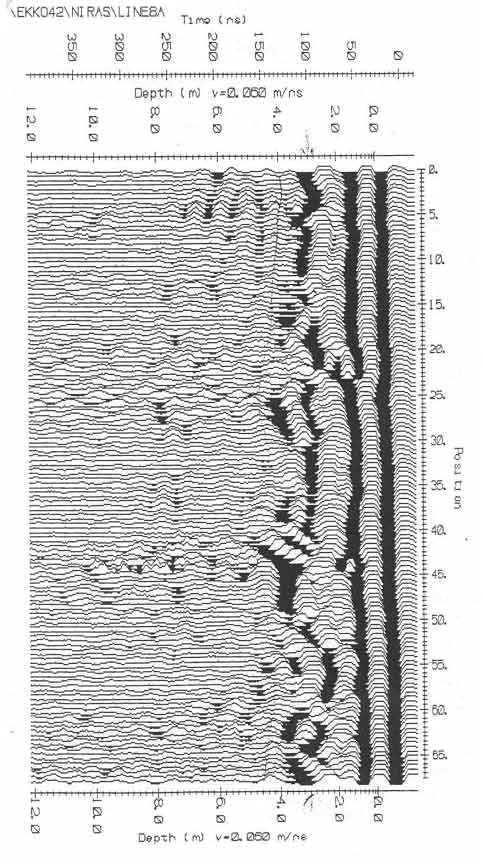 af radargrammerne ses mindst én tydelig reflektor i 2,53 meters dybde. Reflektoren