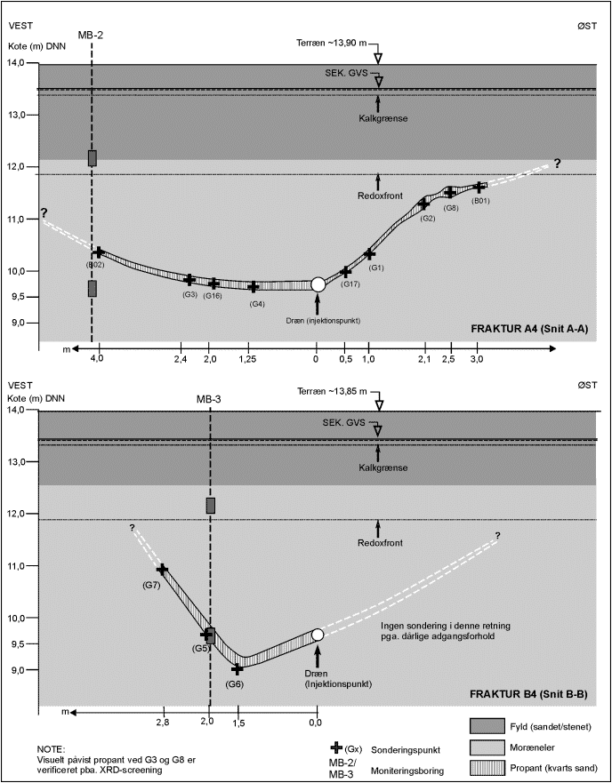 Figur 4.8 Tolket sprækkeudbreddelse langs fraktur 4A og 4B ( tværsnit).