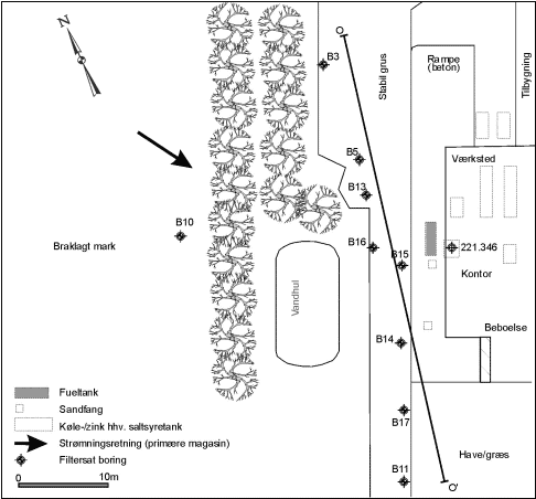 moniteringsboringer samt placering af trace O-O` er vist, dels af bilag A. I dette bilag