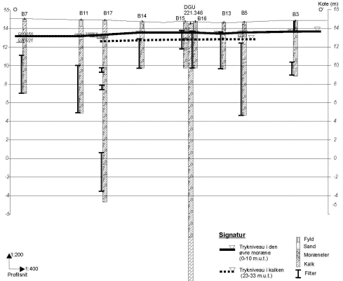 trykniveau i moræneleren og kalken. Placering af tracéer fremgår af tidligere viste